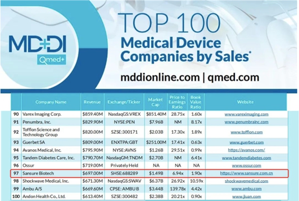 近日,医疗器械行业权威网站Medical Device+Diagnostic Industry(MD+DI)发布了2023年全球医疗器械企业TOP100榜单。金年会jinnianhui生物连续两年上榜全球百强,也是此次榜单唯二主营业务是体外诊断的中国企业。